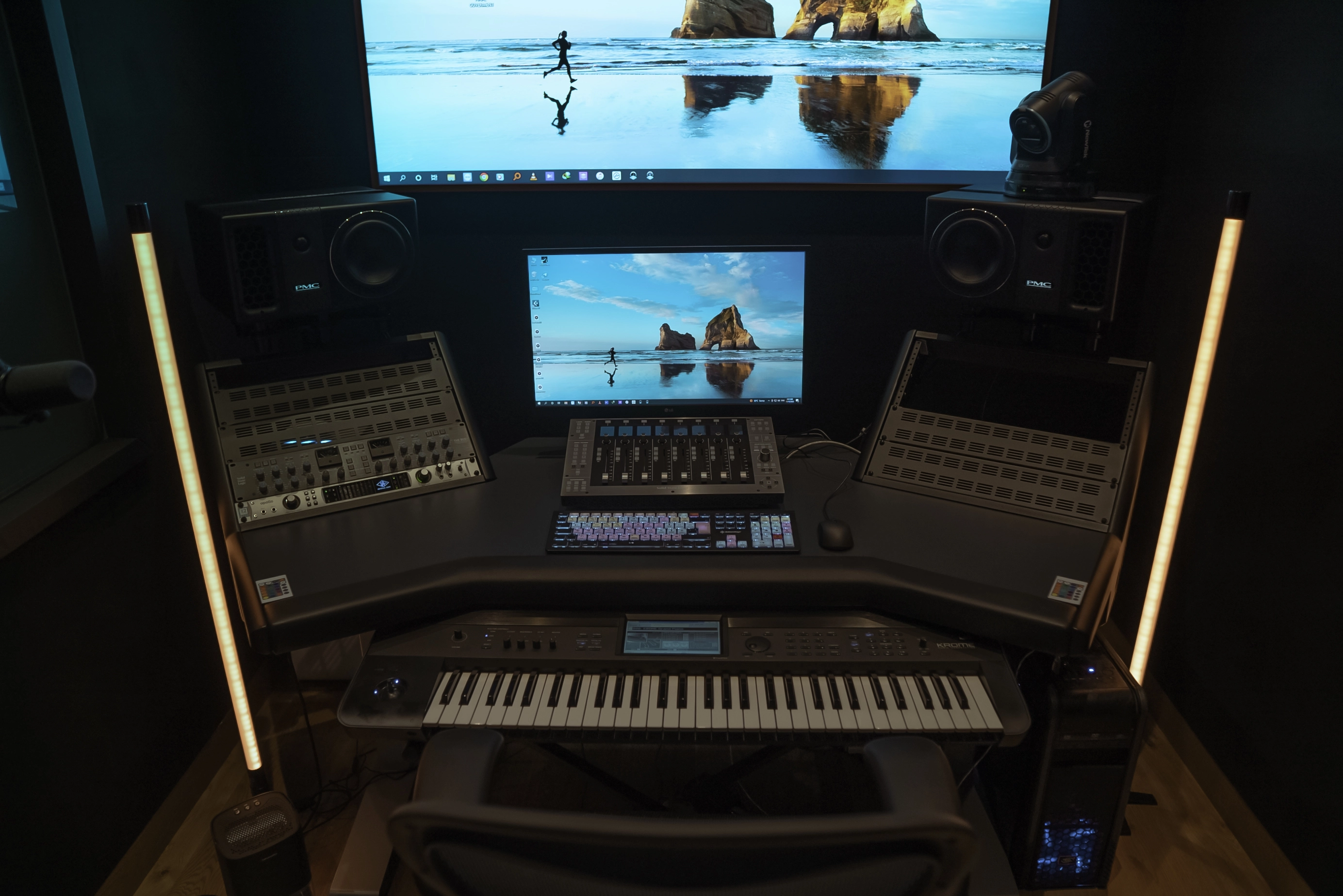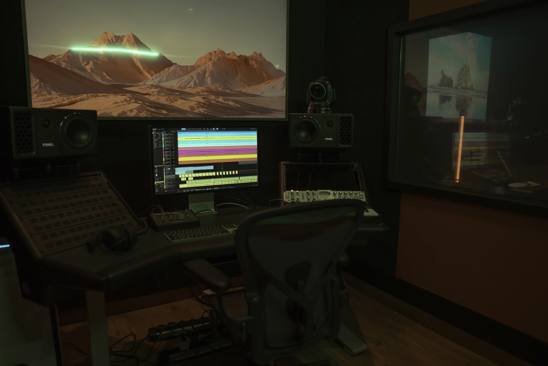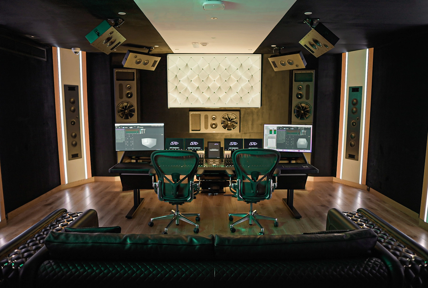 A world-class stereo room powered by the legendary SSL Duality Fuse console and PMC QB1-XBDA monitoring. Every detail is crafted for sonic perfection, from its acoustically tuned design to its breathtaking skyline views. Certified by Dolby and PMC, this room redefines what mixing, mastering, and music creation sound like in Dubai.