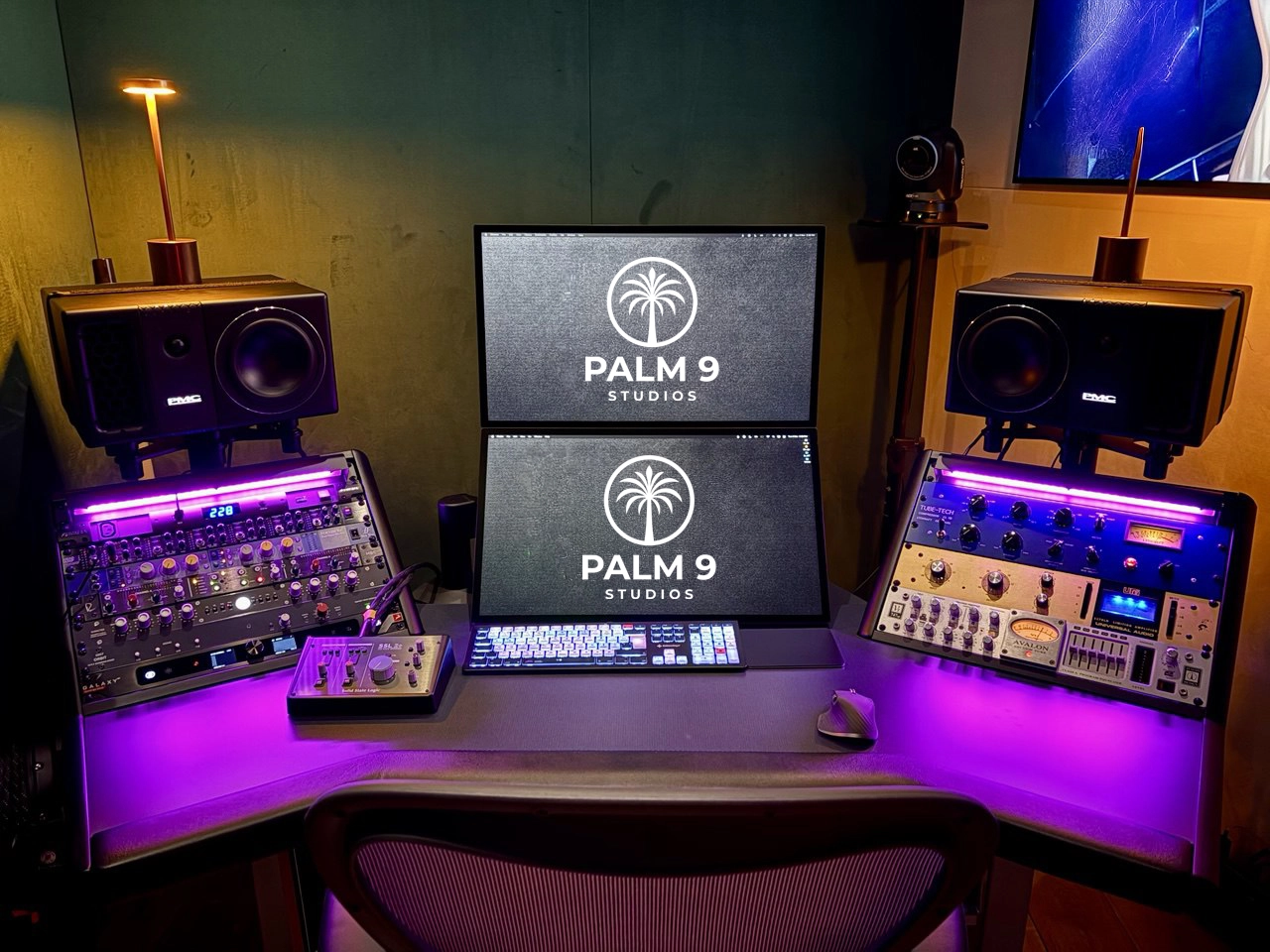 Palm 9 Studios offers a complete ecosystem for professional audio and visual production. Each room is fully acoustically treated and equipped with advanced technology to support everything from high-end mixing and mastering to immersive sound design, live recording, and content creation. Whether you are an artist, producer, engineer, or media creator, our spaces provide the tools, workflow, and environment needed to achieve world-class results.